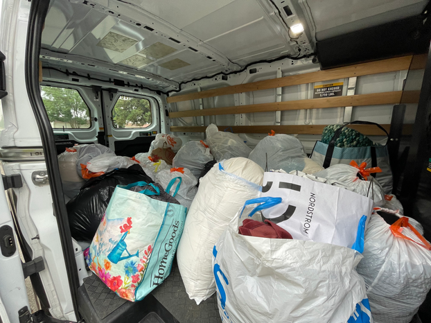 The Livin' it Up collected 350+ items. Items included sweaters, coats, blankets, jeans, and other winter clothing and materials.